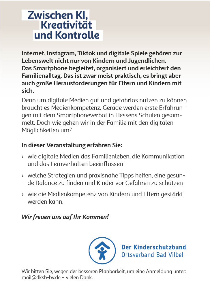 50 Jahre Kinderschutzbund in Bad Vilbel, doch wie sieht die Zukunft aus? Unsere Projekte laufen natürlich weiter und in der Hausaufgabenhilfe, der Kleinkinderbetreuung und im Elterncafé leisten wir gerne weiter einen Beitrag für das sichere Aufwachsen der Kinder. Wir danken allen Helferinnen und Helfern für Ihr Engagement! Gerne freuen wir uns auch über alle, die bei uns im Verein gerne mit anpacken und Projekte realisieren möchten! Melden Sie sich gerne bei uns!